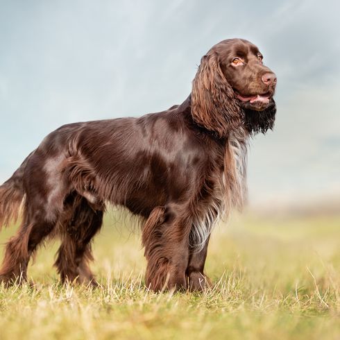 Der sanftmütige Spaniel entlockt jedem eine Lächeln. Wenn ihr auf der Suche nach einem aktiven Familienhund seid, ist der Field Spaniel bestimmt eine gute Wahl. Die mittelgroßen Hunde haben ein sehr freundliches und gutmütiges Wesen, werden zugleich auch gerne gefordert. Der Field Spaniel braucht wie seine Verwandten viel Bewegung und Auslastung. Die Jagdhund-Gene zeigen sich durch seinen Bewegungsdrang und die Intelligenz.