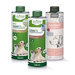Das Premium-Futteröl in der Ein-Liter-Flasche kombiniert verschiedene pflanzliche Öle mit tierischem Öl (Lachs) und hilft oft bei Hunden, die unter Hautproblemen oder Juckreiz leiden.
