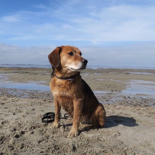 The Beagle-Labrador-Retriever mix breed has a short, dense coat that is typically brown and white. They have a strong, muscular build with a medium-sized head and a long, tapered tail. Their ears are floppy and their eyes are large and brown. They usually weigh between 15 and 20kg and have a shoulder height of 50 to 60 cm. If the Labrador asserts itself more, the dog can also have well over 20 kg.