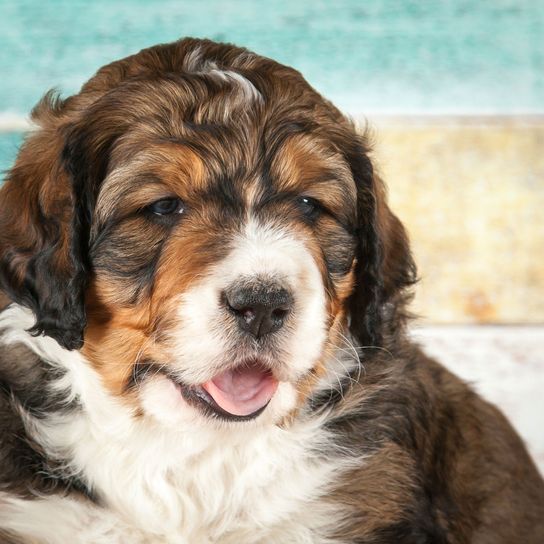 Bernedoodles have a fluffy, curly coat that is often similar in colour to that of the Bernese Mountain Dog. It can be black and white or black and brown. Some animals can also be tri-colour. Their fur is fairly easy to care for and only needs to be brushed occasionally. The animals usually don't shed a lot. Especially if the mother dog is a poodle, it can be assumed that the Bernedoodle puppies will lose less hair than in hybrids where the father is a poodle. They are also known to be hypoallergenic, making them suitable for allergy sufferers.