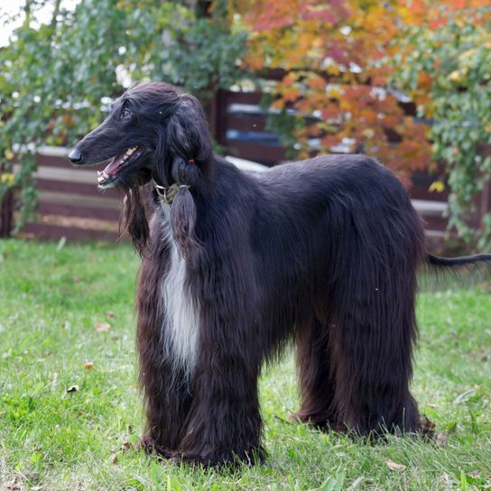 El afgano cautiva por sus proporciones extremadamente armoniosas y tiene un andar ligeramente elástico, propio de la raza. El cráneo es muy estrecho, las orejas cuelgan muy abajo de la cabeza. El sedoso pelaje de este impresionante cuadrúpedo suele ser largo y se presenta en muchos colores. Estos perros deportivos alcanzan una velocidad de hasta sesenta kilómetros por hora en la carrera libre, una capacidad de la que hacen mejor uso en las carreras de perros o en el coursing.