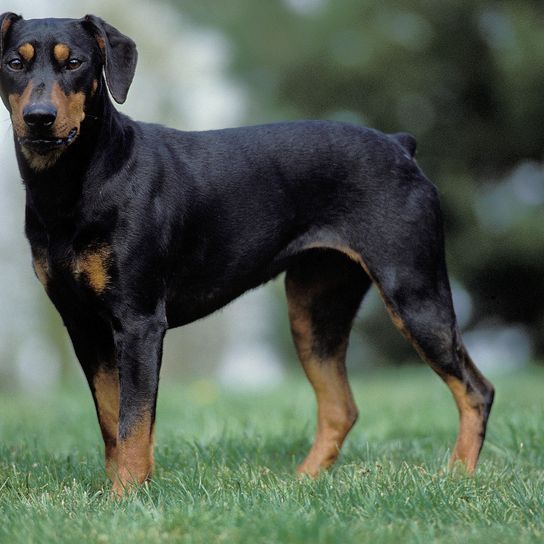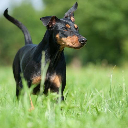 Para mantener el temperamento del pinscher alemán bajo control, hay que ofrecerle la oportunidad de hacer ejercicio a diario. Si se aburre, desarrollará malos hábitos, como ladridos excesivos. Como a veces se comporta de forma impetuosa cuando juega, no es muy adecuado para familias con niños pequeños. También hay que tener en cuenta el instinto de caza, que debe ser controlado desde el principio. Dado que el pinscher alemán es seguro de sí mismo, debes ser siempre consecuente con él. Esto también incluye no dejarse llevar totalmente por el amigo de cuatro patas. También exige la atención de su dueño en casa. Como buen perro guardián, desconfía de los extraños y denuncia a todo aquel que se acerca a su casa.