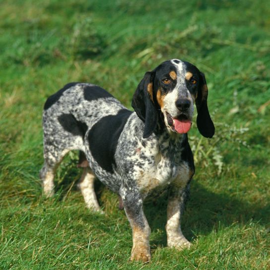 Az egyedi megjelenéséről ismert Basset Bleu de Gascogne jellegzetes szőrzetű, karakteres vadászkutya.
